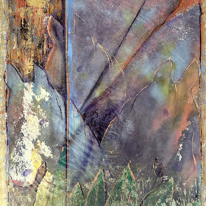 Meamar draws upon his knowledge to add great breadth to his unique style. He finds new techniques to eloquently express his ideas, utilizing the mixed media format to be found in many of his pieces. A fond disciple of color, his works are never bland or sterile. He often prefers to use the dynamic color range of acrylics, casting them against paper backgrounds with plentiful use of light. One will always feel a positive emotion from these efforts, which reach across at many levels so that anyone may perceive it. In his latest collection,.....